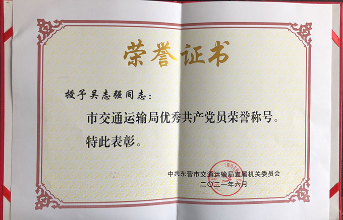 吳志強榮獲”市交通運輸局優秀共產黨員“榮...